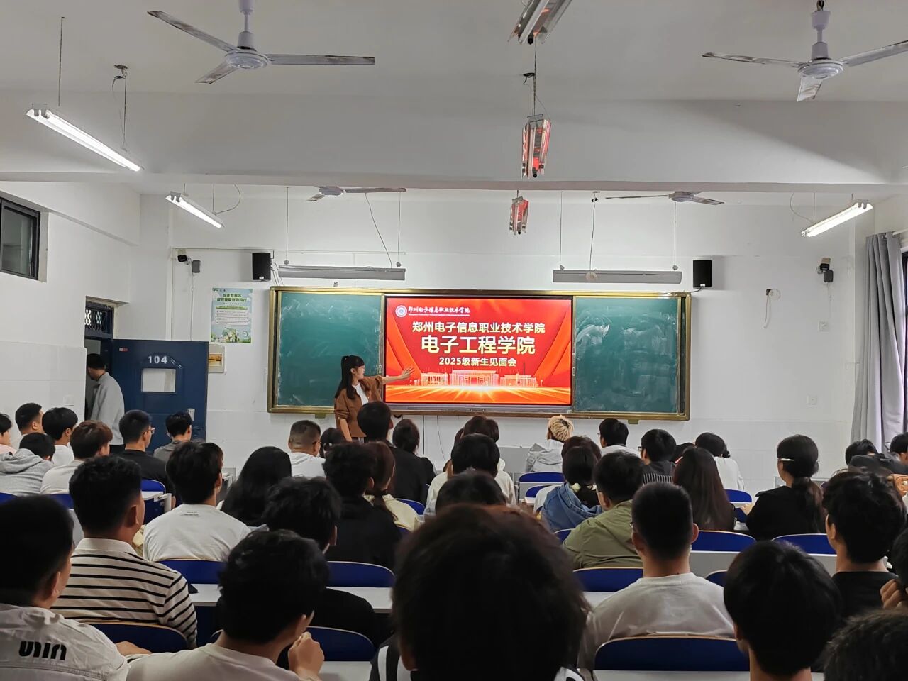 为了欢迎新同学的到来,2025年9月11日下午,电子工程学院在5号教学楼103,104,105,106教室举行了新生见面会。
