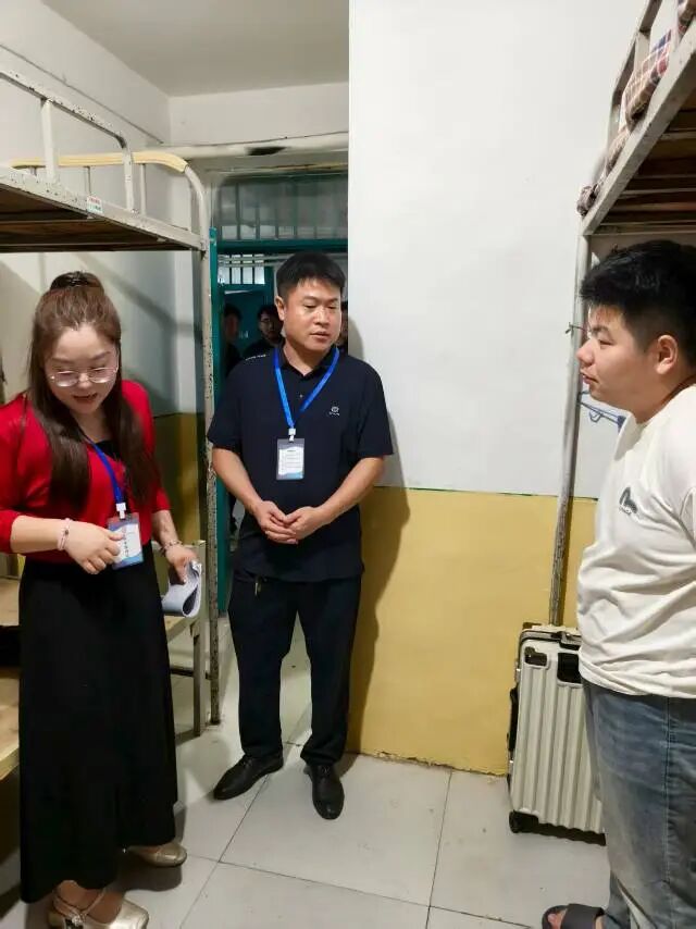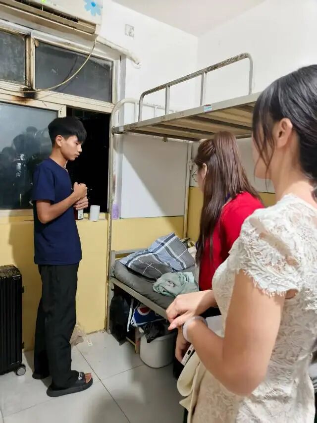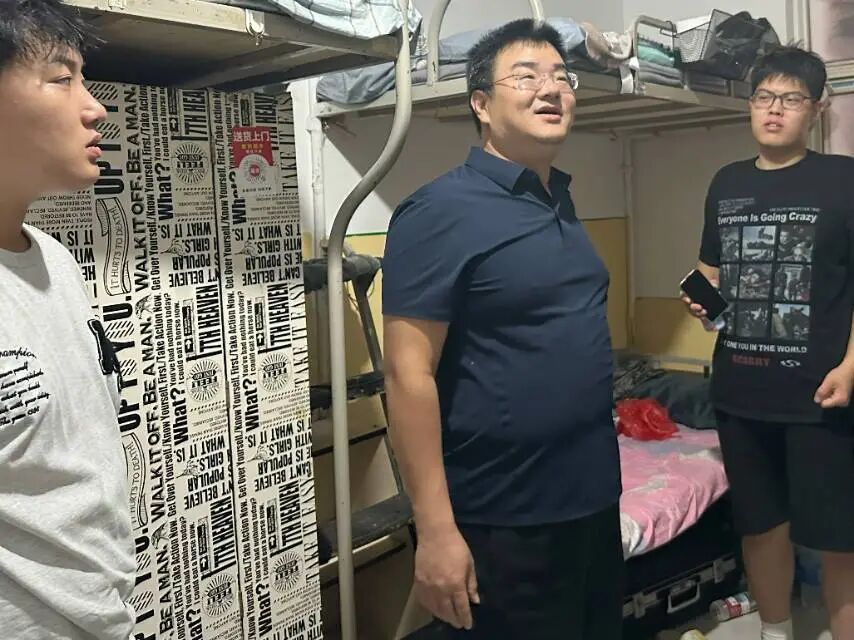 在走访过程中,陈校长亲切地问候入学新生学生,与新生进行面对面的交流,了解他们的学习情况、生活需求等方面的信息,同时为同学们目前生活中遇到的问题,进行答疑解惑、解决困难,并且提出宝贵建议,提醒同学们在平常生活中务必注意财产安全、用电安全和人身安全,谨防诈骗。同时向新生介绍了学校的规章制度、校园文化、教育资源等方面的信息,帮助他们更好地融入校园生活。