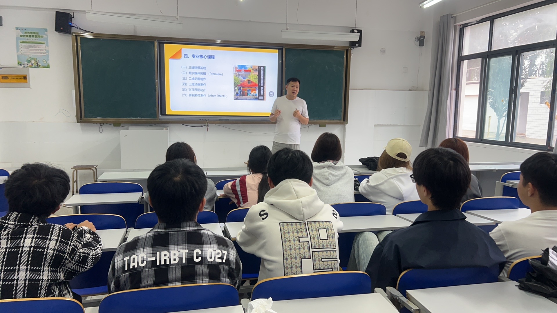专业课教师许瑞丰、王茹、李彦鹏,针对不同专业,从新版人才培养方案切入,从课程体系、行业趋势、职业能力三个维度展开介绍。许瑞丰老师鼓励同学们要打牢绘画基础、勇于创新,不断在实践中提升自己的审美修养,在艺术与技术的融合中探索个人风格,以此来追求艺术创作的上限。李彦鹏老师梳理各专业发展历程,从环艺的 “绿色 + 智慧” 转型、数媒的 “AIGC + 元宇宙” 爆发,到广告的 “动态 + 数据” 驱动,用产业规模、岗位缺口等数据具象化行业现状。同时,通过课程与岗位技能对应表、实践项目就业案例,清晰拆解 “学习重点 — 能力输出 — 就业适配” 链路,还为新生规划三年成长路径,强调工具认证、项目实战的重要性。切实帮助新生破解专业认知困惑,明确学习目标。老师们还与新生进行了互动交流,解答了他们关于专业学习的疑问和困惑。新生们纷纷表示,通过这次专业介绍,他们对未来的学习充满了信心和期待,将以饱满的热情投入到专业学习中去。